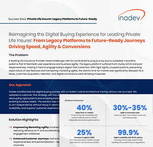 Learn how a leading life insurer reimagined its digital buying journey through our customer-first strategy and scalable architecture—resulting in faster time to market, improved conversion rates, increased organic traffic, and enhanced scalability.